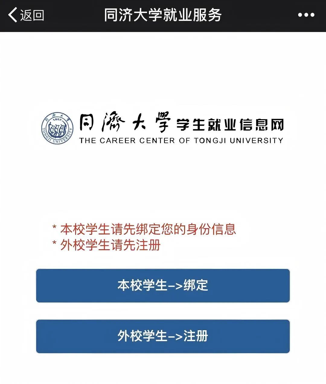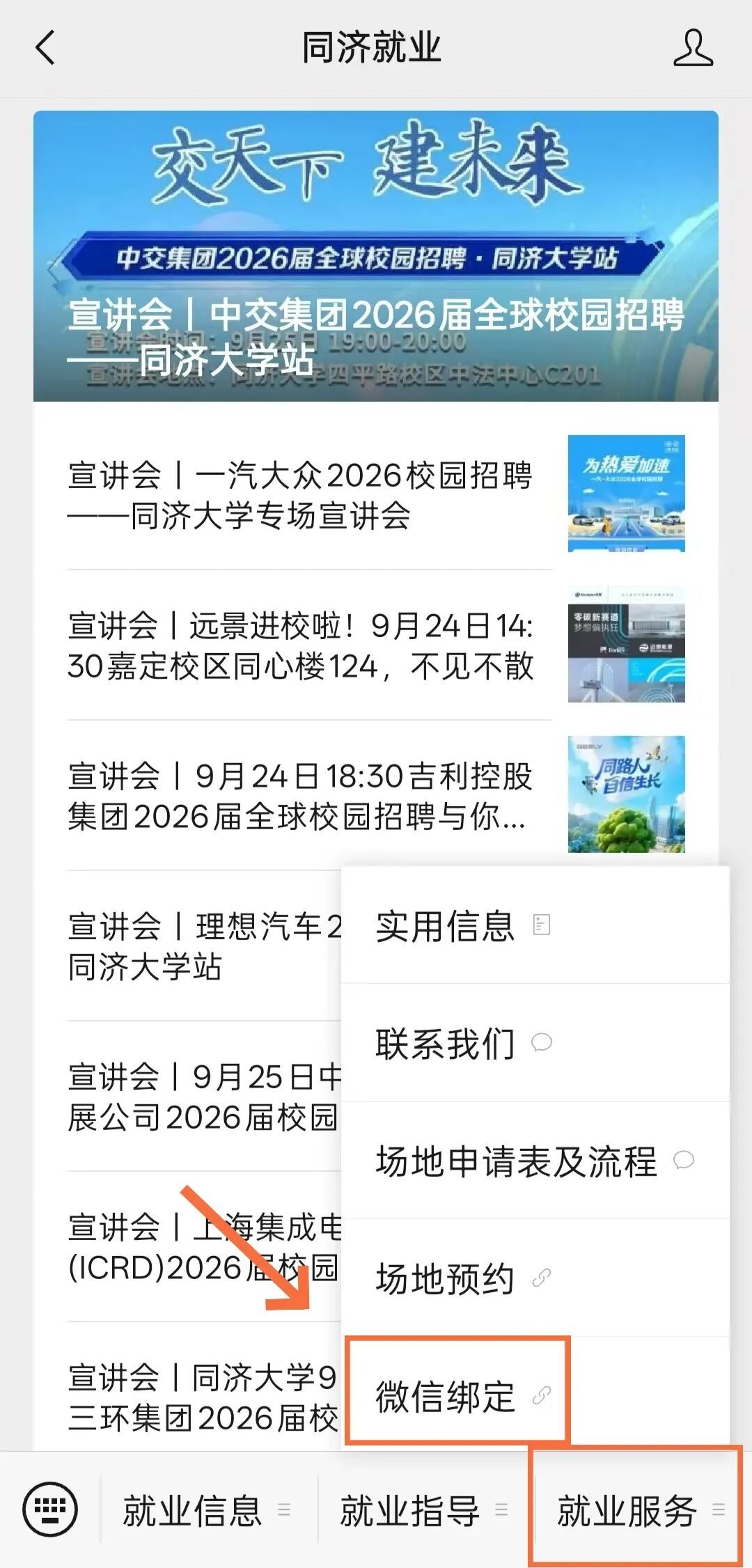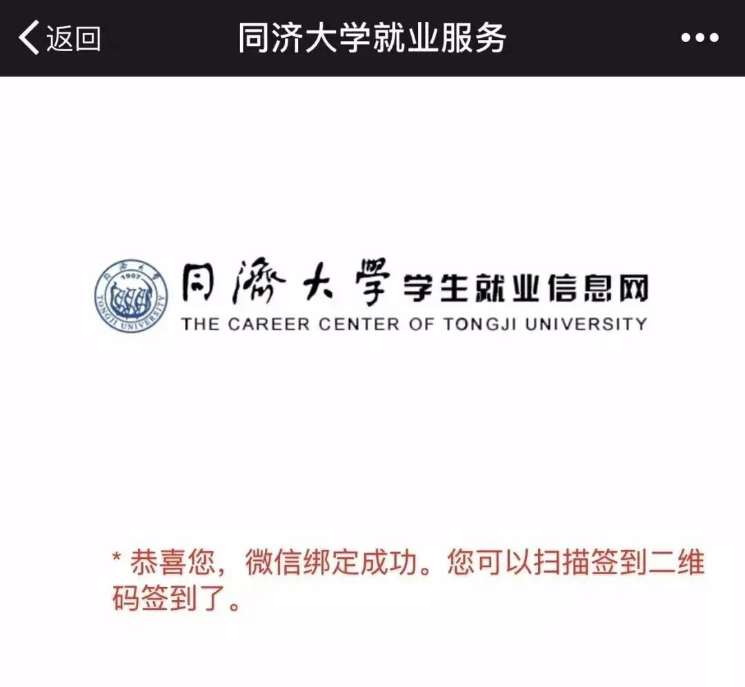 使用学号和密码登录同济大学学生就业信息网,再用微信扫描屏幕上的二维码也可完成绑定操作哦!