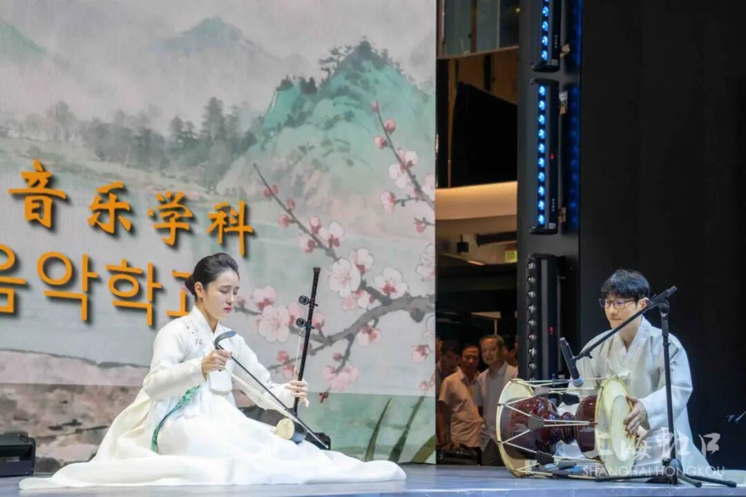 演出在中韩双语主持中拉开帷幕。节目编排充分展现了两国文化的多样性与包容性,既凸显传统底蕴,又洋溢现代活力。韩方节目既有釜山大学韩国音乐学科带来的奚琴独奏《雨》、筚篥三重奏《Menari舞曲》等传统乐章,尽显韩国古典音乐韵味;也有Just Dance学院演绎的《Like Jennie》《Dirty Work》等现代街舞,活力四射,引来阵阵喝彩。太平箫与四物游戏的打击乐合奏,更以强烈的节奏感展现了韩国传统艺术的独特魅力。