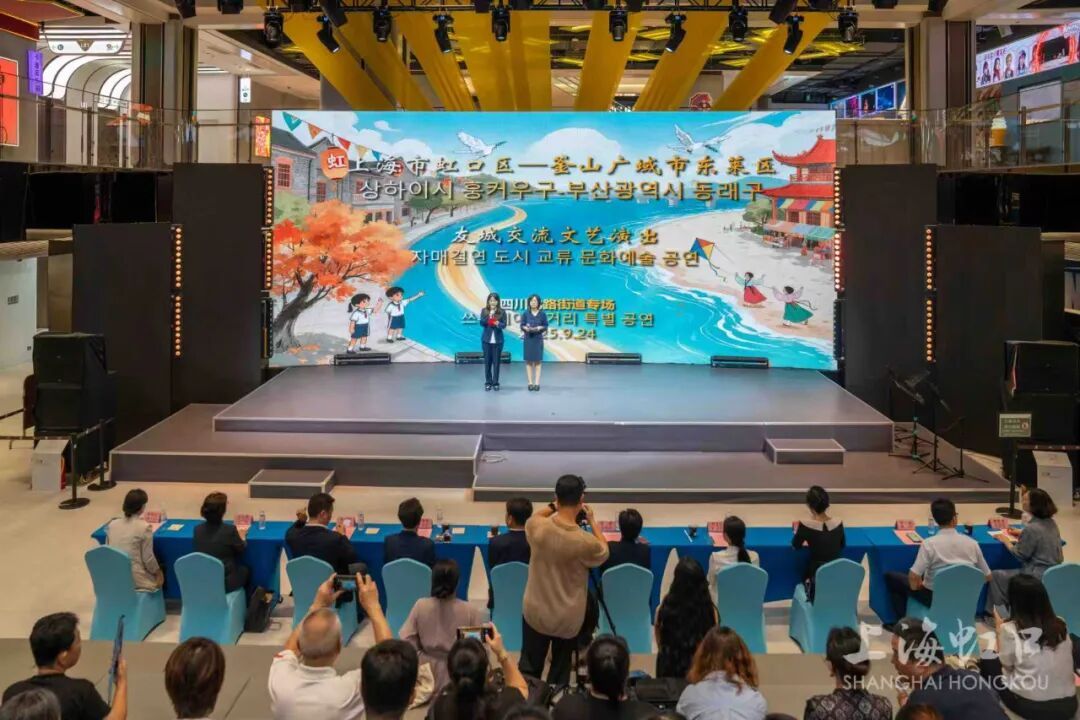 9月24日上午,滨港商业中心内欢声阵阵、气氛热烈,“上海市虹口区——釜山广域市东莱区友城交流文艺演出(四川北路街道专场)”举行,以艺术为媒,续写两区近三十年友好交往的深厚情谊。
