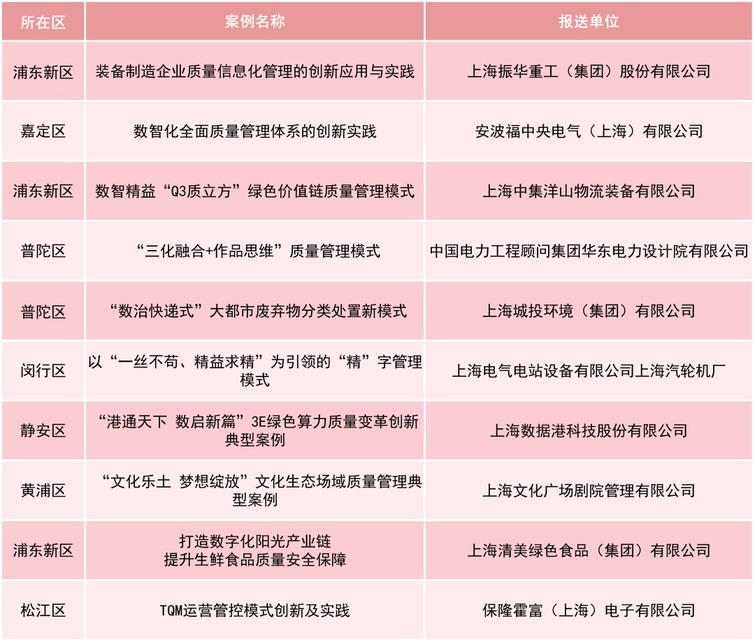 为贯彻落实《质量强国建设纲要》部署要求,进一步健全企业首席质量官制度,服务发展新质生产力,支撑经济社会高质量发展,2025年全国“质量月”期间,市市场监管局面向全市征集、评选出10个企业首席质量官加强全面质量管理优秀案例,并向市场监管总局推荐。经评选和社会公示,本市共有2家企业获评全国“2025年企业首席质量官加强全面质量管理典型案例”、1家企业获评全国“入围案例”,1家企业获评全国“优秀微视频”,集中宣传展示了上海企业首席质量官质量变革创新发展的优秀成果。