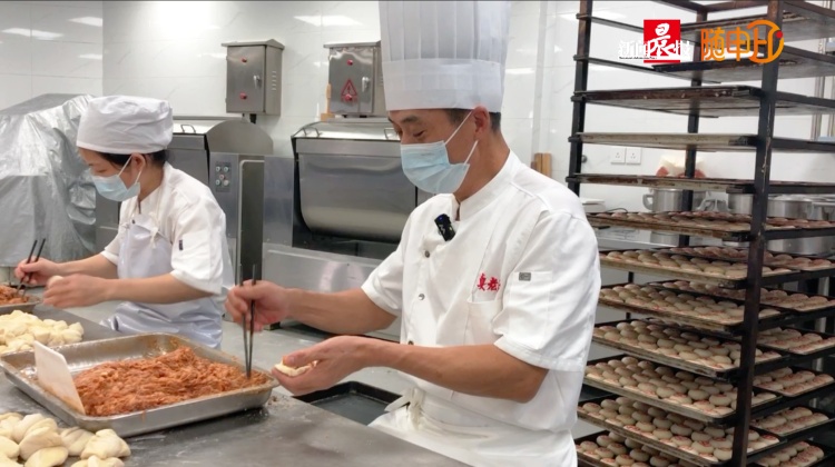 记者穿上白色的工作服、戴上口罩和帽子进入工场间,这里是真老大房制作包括月饼在内的糕点生产车间。只见师傅们正在制作鲜肉月饼,制油酥、打皮子、卷皮、揪段、包馅、盖章,大家通力配合。鲜肉月饼制作完成之后,开始甜口月饼的制作。