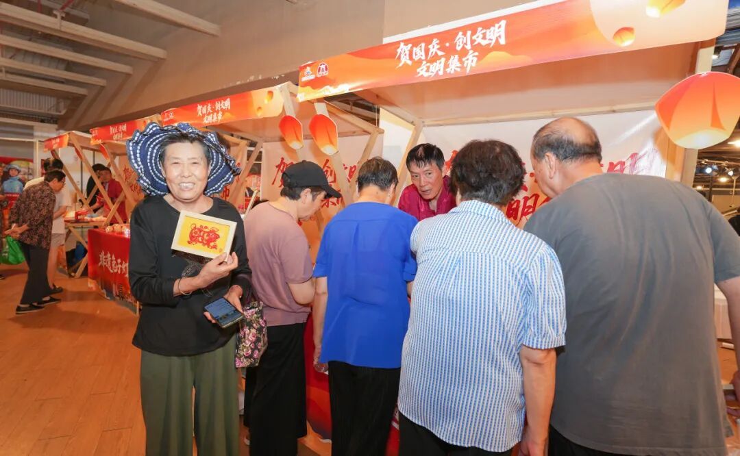 活动还设置了“寻美真如・光影瞬间”摄影大赛颁奖环节。多幅获奖作品聚焦社区整洁的楼道、和谐的邻里场景和优美的环境,生动展现了真如的文明细节。活动结束后,居民们参观了“贺国庆・创文明”文明集市。集市设有12个摊位,包括剪纸、面塑等非遗展示,以及文明交通宣传、绿色出行指引等内容,吸引了不少居民驻足体验。