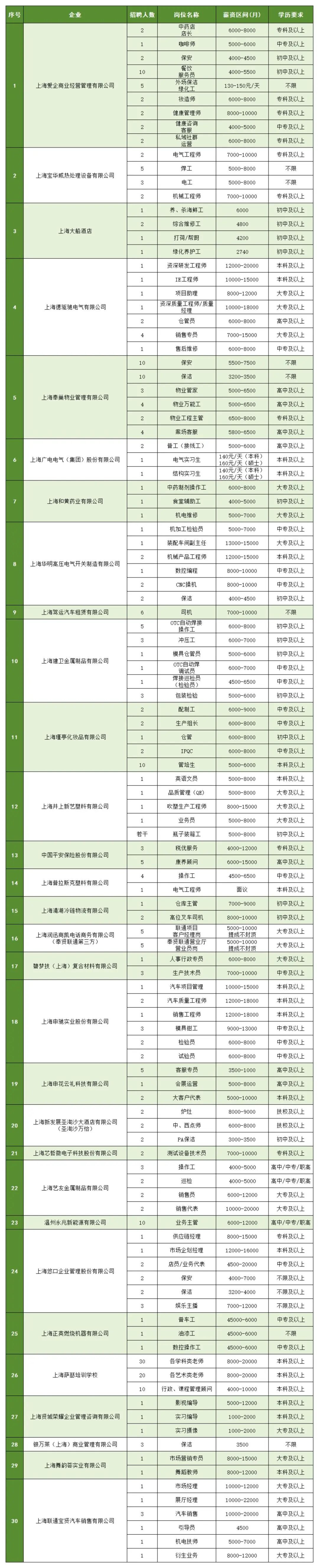 本次活动参会企业30家,招聘岗位包括中药店店长、咖啡师、保安、餐饮服务员、妆造师、健康管理师、健康咨询客服、私域社群运营、电气工程师、机械工程师、资深研发工程师、IE工程师、项目助理、资深质量工程师/质量经理、物业管家、管培生、英语文员、业务员、康养顾问等111个,招聘人数312人。