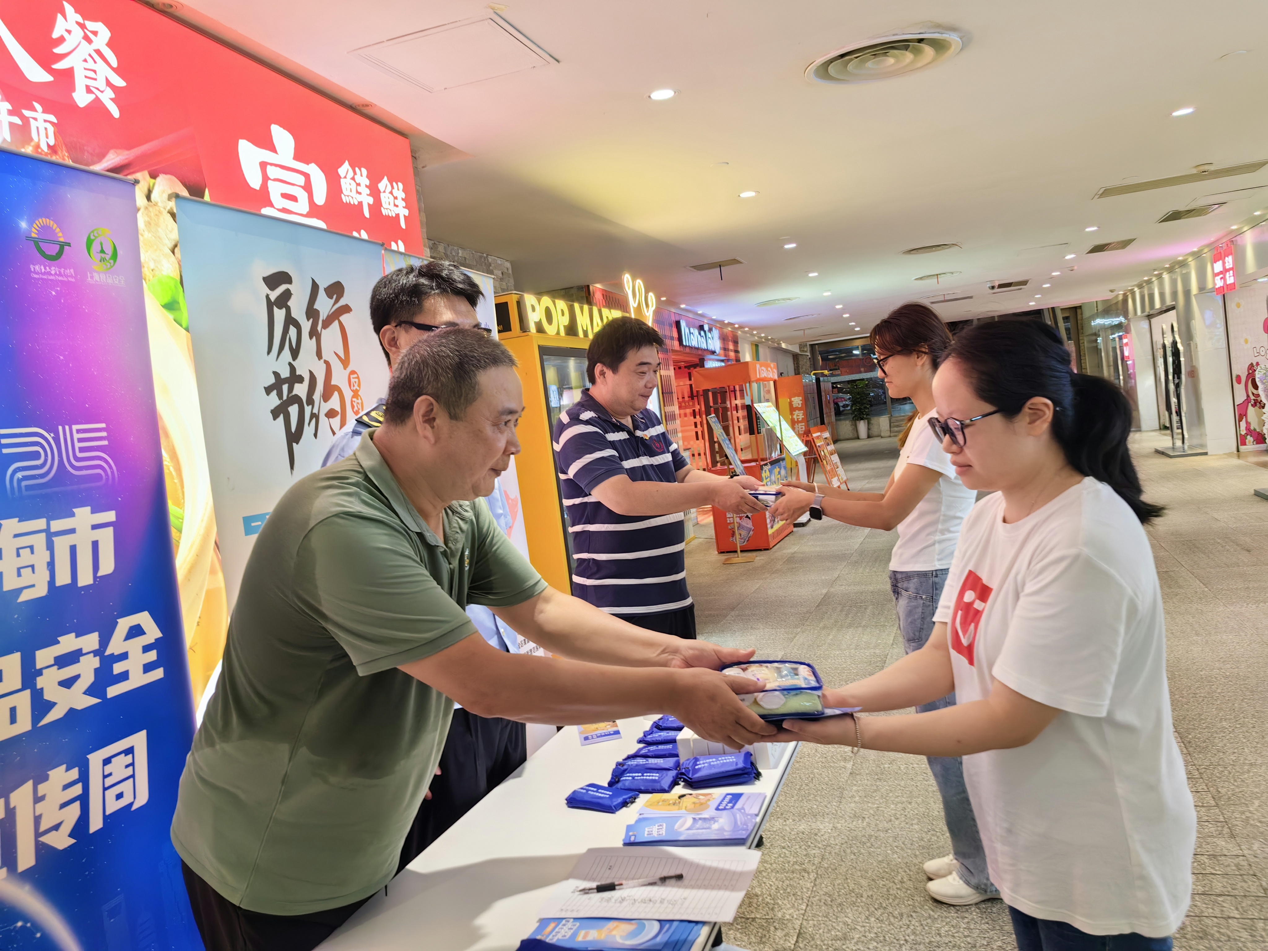 街道食安办携手北站市场所以及大悦城悦享荟党群服务站在静安大悦城联合开展食品安全主题宣传活动。活动面向商场从业人员和消费者,通过易拉宝展示、发放宣传手册、现场互动讲解等多种形式,普及食品安全法律法规知识,并重点倡导“节约粮食”“光盘行动”“小份菜”等文明餐饮消费理念,督促企业严格落实主体责任,规范经营行为,共同引领绿色消费新风尚。