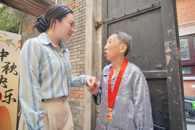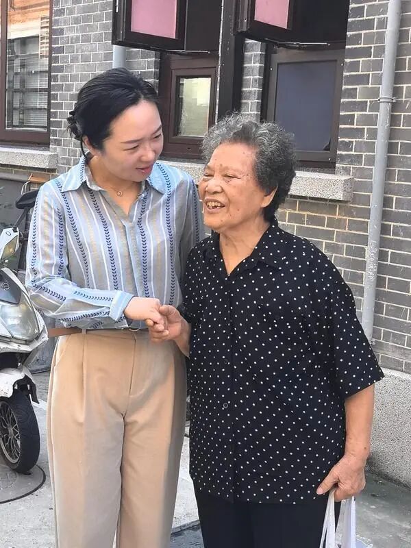 “我会好好珍藏这张照片!你们要继续加油呀!”九十多岁的逢佩兰阿婆——承兴里第一任居民区党组织书记,临别前仍不忘勉励后辈。