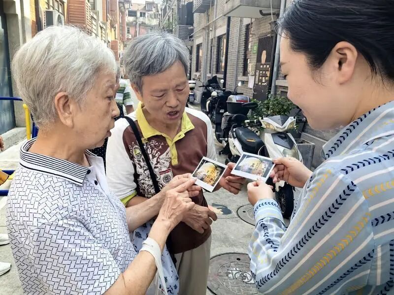 “我特意选了写有‘承兴里’的这块牌子,你看我们拍得好吗?”一位阿婆开心地展示照片。