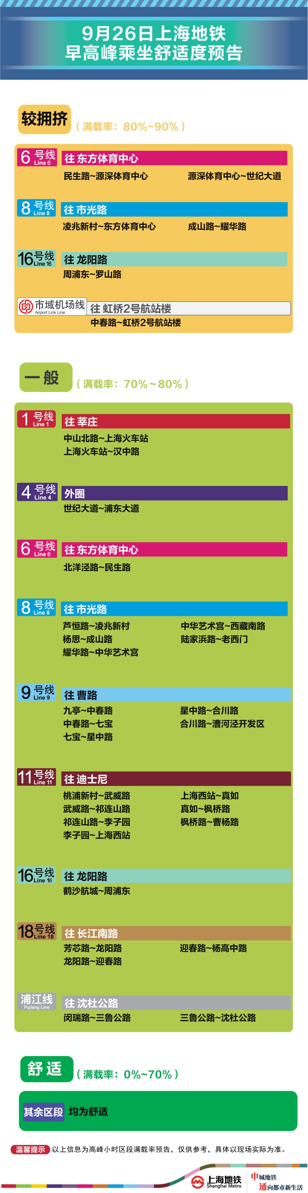 为提升上海地铁早高峰期间出行服务水平,提升乘客乘坐体验,上海地铁向乘客提供乘坐舒适度预告,方便乘客提