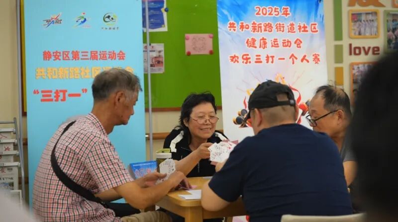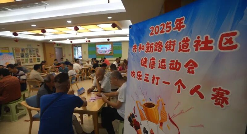 近日,共和新路街道社区健康运动会“欢乐三打一”比赛开赛,118名社区居民齐聚赛场,以牌为媒切磋技艺,尽显邻里竞技乐趣。