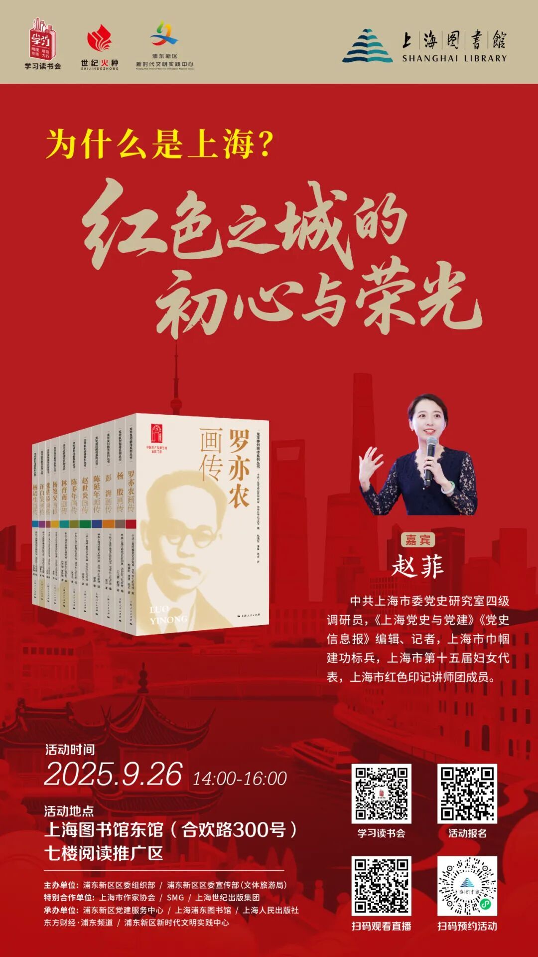 第七届上海图书馆阅读季以“弦歌不辍、书声致远”为主题,围绕“江山红遍”“寻传薪继火”“朝花夕拾”“美美与共”“智创未来”“大城小书”六大板块,开展一系列精彩纷呈的阅读推广活动,致敬先贤处变不惊的生命境界、彰显吾道不孤的文化自信、传承弘毅坚韧的使命担当。