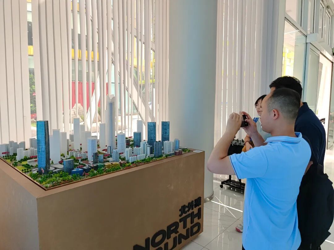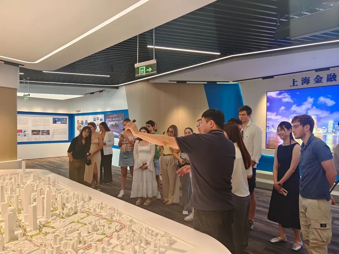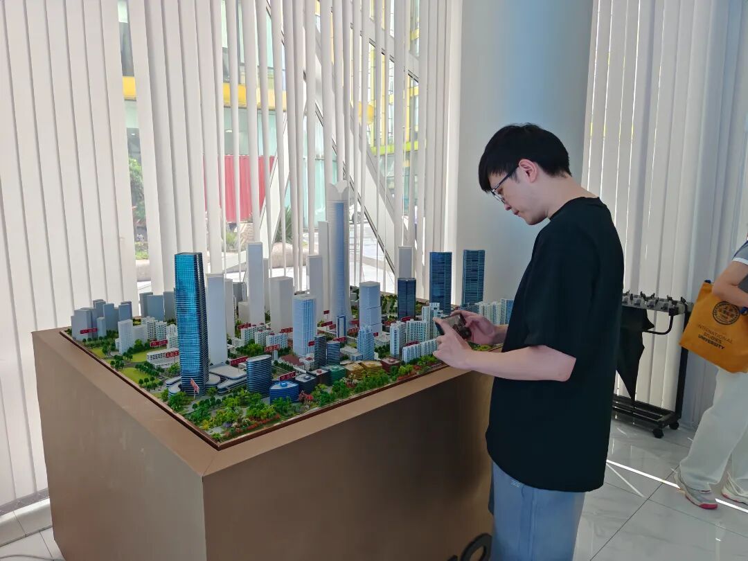 “这里是未来全新的浦西第一高楼,高度将达480米。”在北外滩数字展示馆,讲解员介绍了虹口北外滩的发展情况。通过智慧化的手段,利用沙盘模型和沉浸式影片,让大家了解北外滩区域形态布局和规划建设情况,直观感受“上海北外滩、都市新标杆”的国际化发展愿景。同学们不时举起手机,记录下北外滩的发展成就和美好未来。