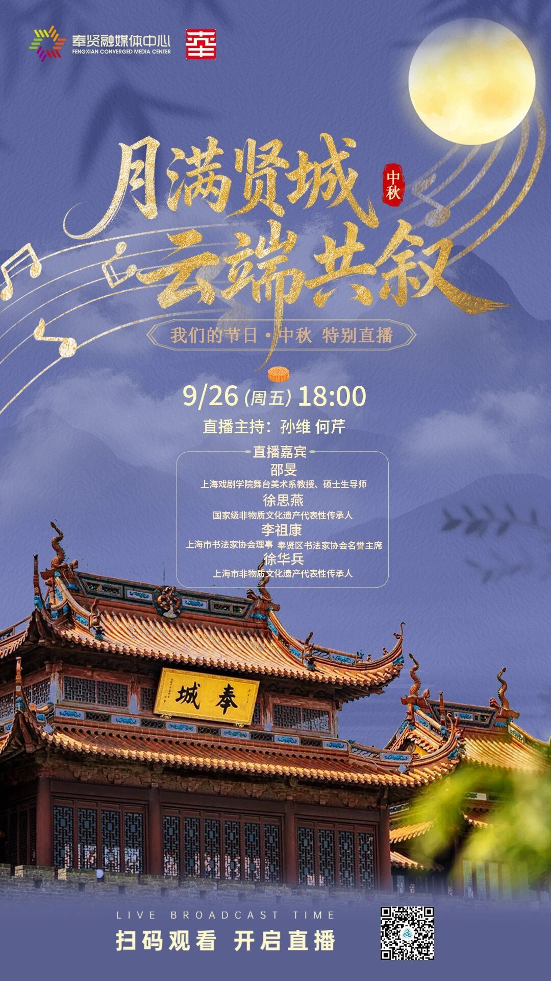 2025年9月26日(星期五)下午18:00,锁定“上海奉贤”视频号,共赴城墙之约,读懂贤城深情,不见不散!