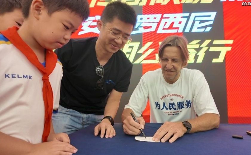 活动现场,近百位球迷、市民和行业人士齐聚一堂。安布罗西尼与球迷们亲切互动,赠予写有祝福的明信片传递祝福,让体育精神、公益温暖与品牌力量在此交融。来自崇明生态旅游集团的足球队也与安布罗西尼进行了互动,拉近了中外体育文化交流的距离。