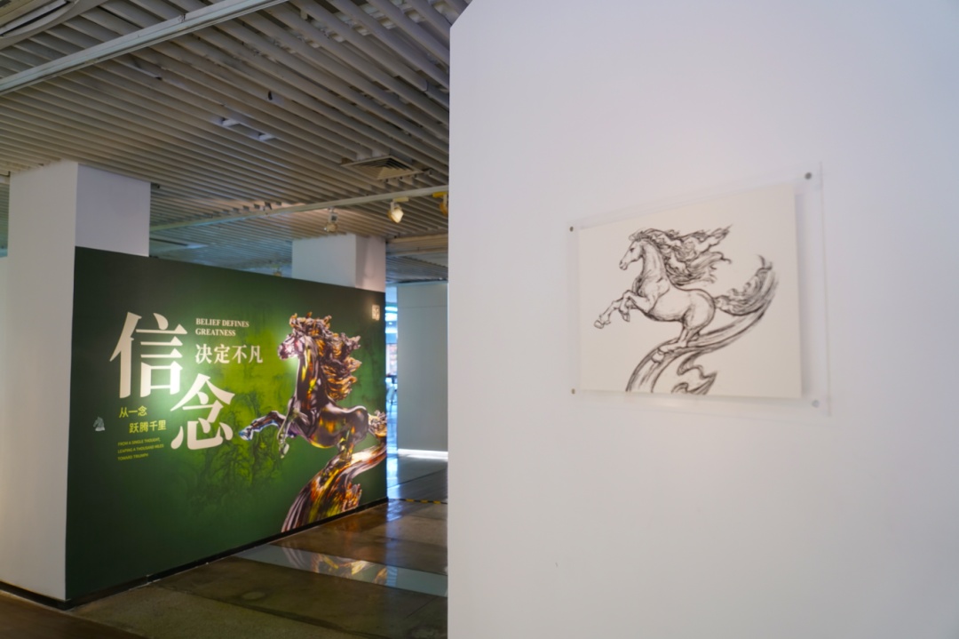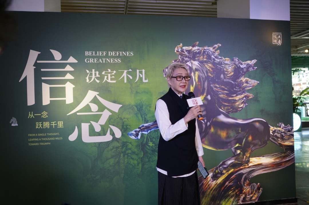 杨惠姗表示,《卓越》《炽热》《信念》《飞扬》四件中大型作品创作灵感源于天地间的“风、火、山、气”四种元素,展现马的不同能量与气韵。