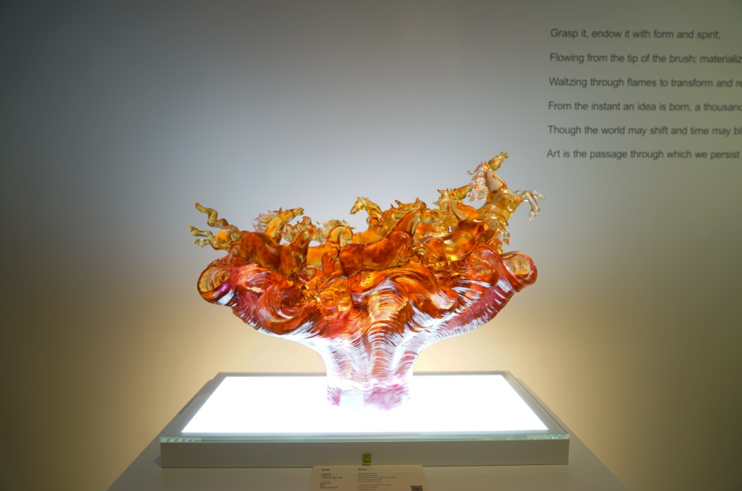 从工艺的角度来看,此次展览的作品有着极多的挑战,颜色层次表现、局部定色、金箔复合工艺等,视觉形象、线条运用也有诸多突破。“我们相信,这个世界不能缺少中国琉璃。我们相信,文化必须世世代代积累。就是因为这个相信,它一次又一次地带着我们翻山越岭,把那些看似不可能的事情化为可能。”杨惠姗说。