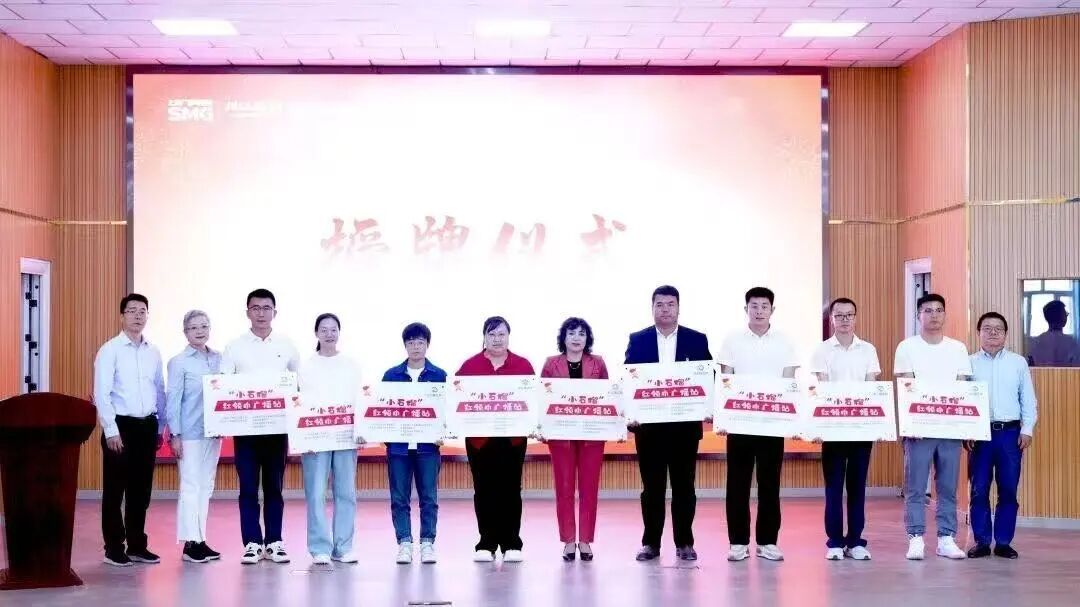 上海市援疆前指社会发展事业组组长、喀什地区教育局副局长孙利强,上海市援兵团前指社会发展组组长、兵团草湖项目区党委宣传文化部副部长杨国珩,上海广播电视台东方广播中心纪委书记、副总编辑张明霞共同为巴楚县友谊小学、第五小学,叶城县红军小学、第四小学,泽普县第二小学,莎车县托木吾斯塘镇智慧小学,以及兵地融合发展草湖项目区红旗农场学校、托云牧场学校、兵地融合发展草湖项目区中学授予“小石榴”红领巾广播站站牌。