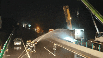现场指挥部综合研判后,确定救援方案,维持罐体侧翻状态,由多台大型吊车协同作业,将罐体吊装至运输车辆,转运至高速外安全区域再进行倒罐。待吊车、工程运输车、倒罐车等重型救援设备全部到位后救援全面展开。经过9小时的紧张处置,完成了侧翻罐车转移和倒罐。