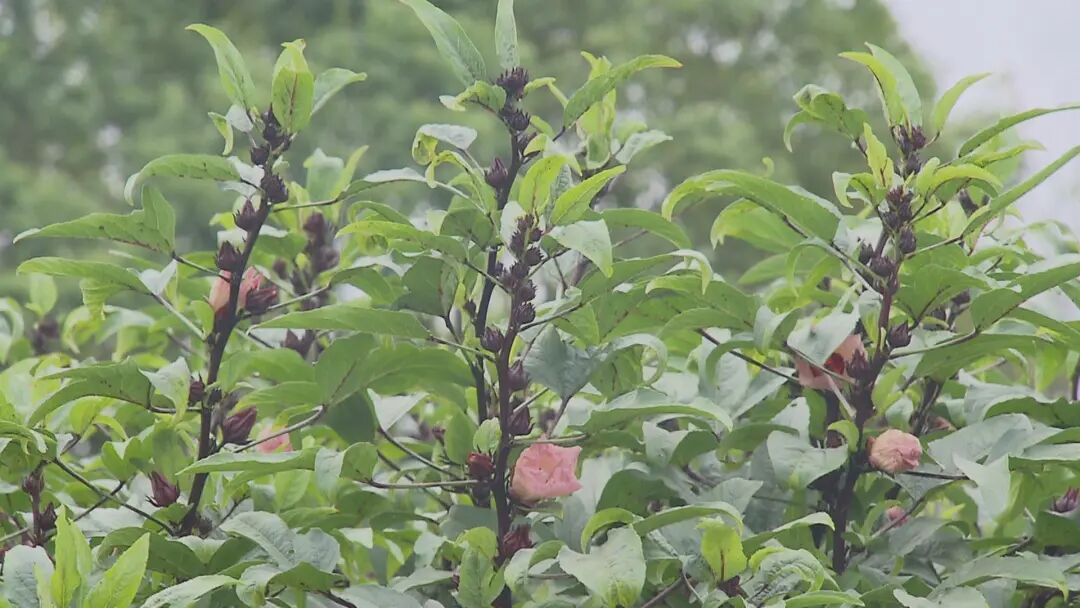 洛神花,又名玫瑰茄,气味清香并略带酸味,富含花青素、多酚酸等有益成分,具有敛肺止咳、降血压等功效,其花萼是主要的食用和药用部分。北新村种植洛神花已有四年历史,此前村委会多将其加工成花茶、花酱。今年,在村美食爱好者周周的尝试下,洛神花的应用从饮品拓展到了菜肴。