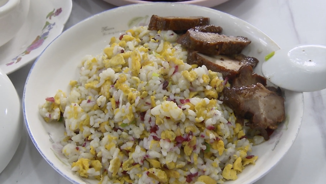 不一会儿,一桌色香味俱全的洛神花宴便准备妥当。鲜艳的色泽令人食欲大开。前来品尝的村民对此反响热烈,不同年龄层各有偏爱。年轻村民觉得蛋炒饭融合了清香和酸甜,层次更丰富,而老年村民则对汤品赞不绝口,认为“汤很鲜,吃不出酸味,很不错”。