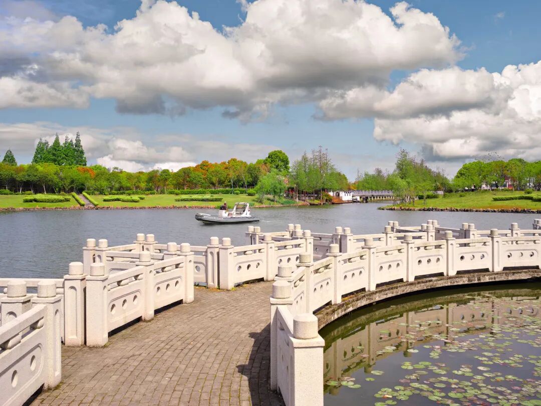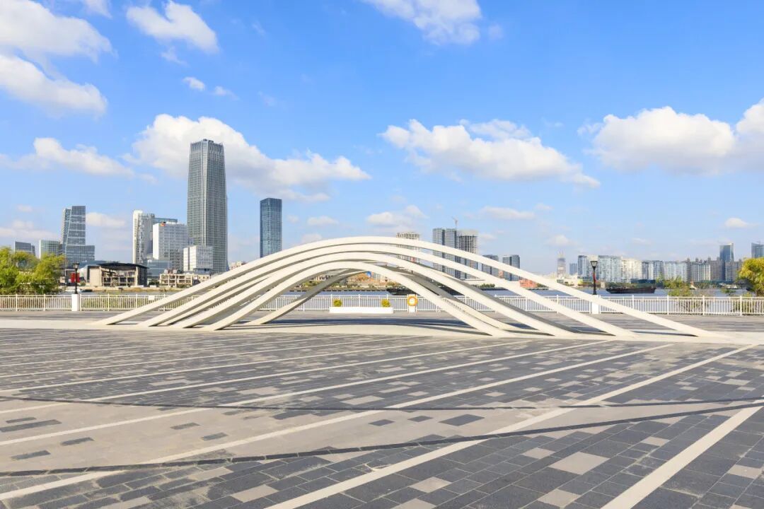 亲水平台位于上海浦东新区张家浜东方路桥东侧两岸,实质是两座浮桥,可适应上海地区季节性水位变化。作为陆家嘴水环贯通工程的重要组成部分,其设计融合了生态、科技与景观功能,是城市滨水空间更新的创新实践。该浮桥不仅是通行设施,更是上海推进“生态之城”建设的缩影,体现了城市公共空间如何兼顾韧性、美感与科普价值。