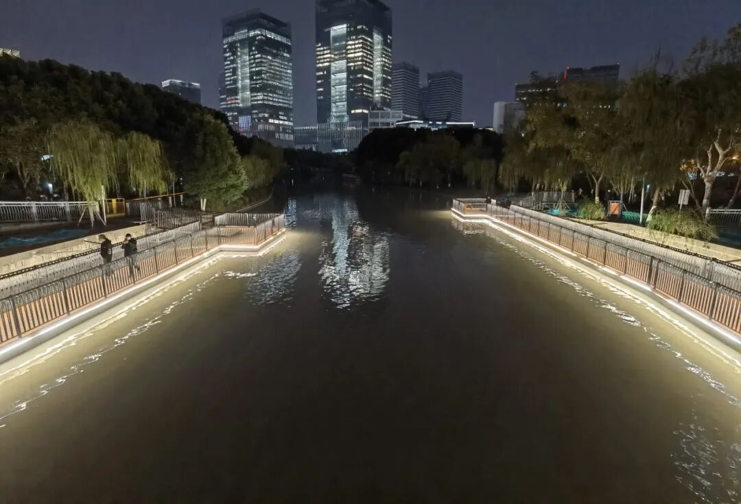 亲水平台位于张家浜流经上海科技馆的南侧,是陆家嘴水环的核心节点之一。平台通过阶梯式设计从陆地延伸至水面,为市民创造了“触手可及”的亲水环境。张家浜亲水平台作为城市滨水空间的典范,体现了“水岸共生”的先进理念,既满足了市民亲水近水的需求,又通过科学设计保障了防洪安全。它见证了一条黑臭河道的生态涅槃,也承载着城市公共空间的人文关怀。