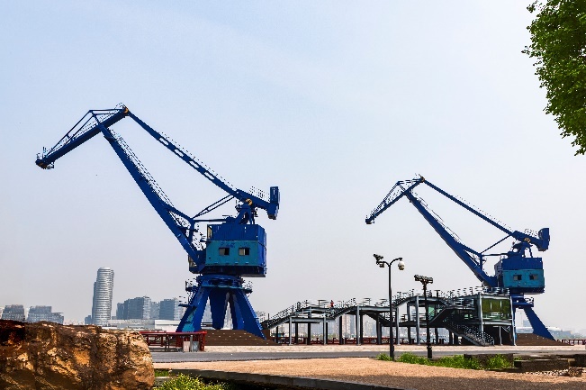 世博公园中有两座工业塔吊作为工业遗存得以保留,504和508塔吊作为上海早期重工业发展的见证者,矗立在江畔,形成一处别有特色的内凹式亲水平台。在塔吊背后还有线条优美的卢浦大桥作为背景,夜间驻足观赏也别具一番风味。这里活力澎湃,热力十足,平均每年举办活动约20场。