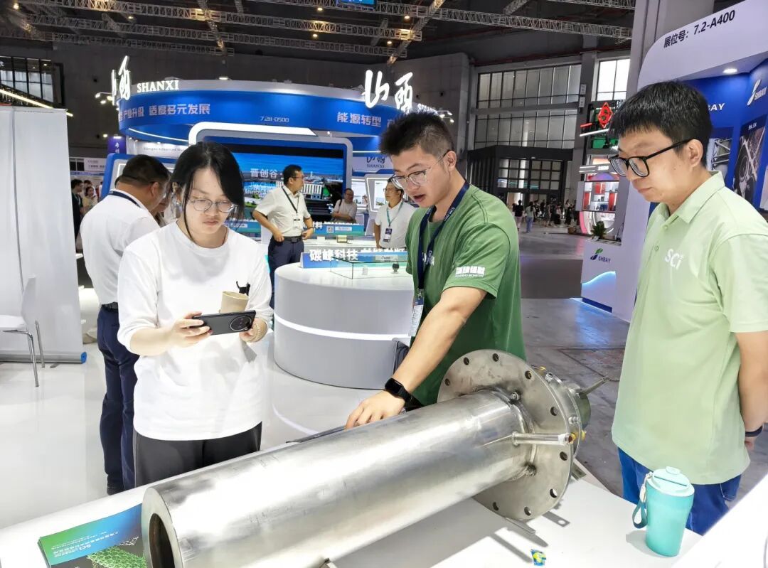 不远处,上海碳基纳米研究所的展品也吸引了不少目光。上海国创碳基纳米材料研究所孵化企业总经理介绍,研究所由宝山区、长三角国家技术创新中心及专家团队共建,聚焦碳基纳米材料的研发与转化。此次他们不仅带来了高端碳微球、石墨烯导热膜等产品,还有利用等离子的技术裂解制备的高端导电碳纳米材料。“我们不仅做研发,也做孵化。”他表示,目前已通过工博会接触到一批意向客户,后续将逐一深入对接。