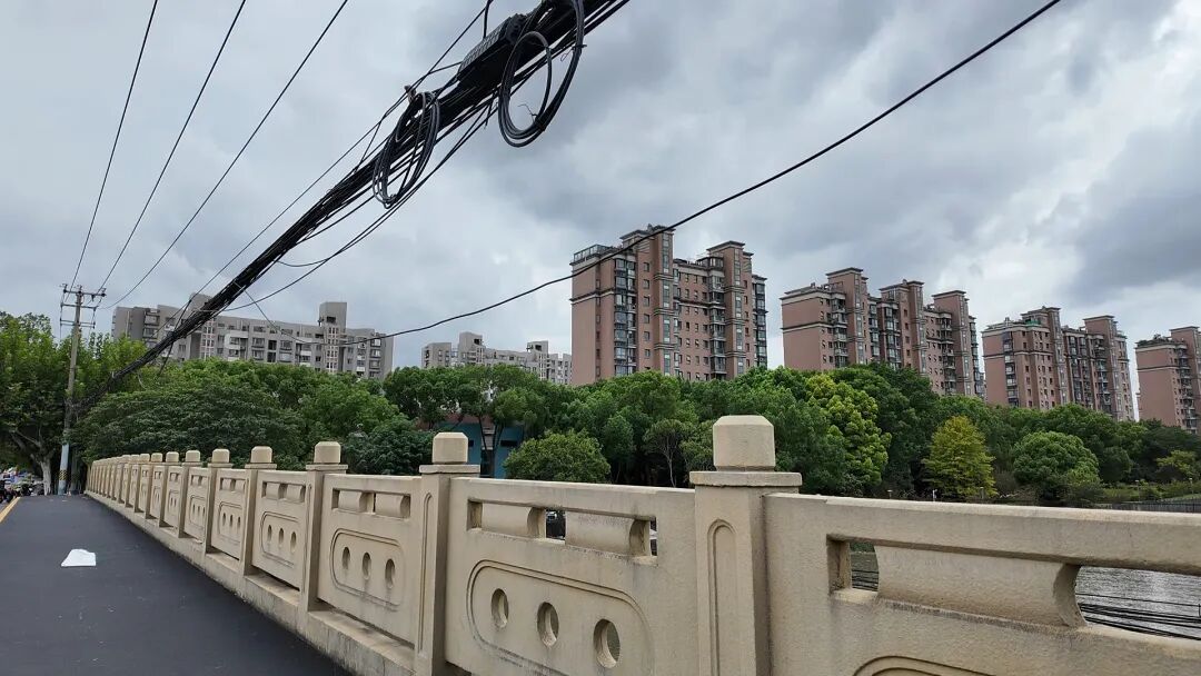 记者在现场看到,垂落的黑色线缆位于桥面西侧人行通道上方,距离地面最低处仅约1.8米。该高度恰好接近成年人头部及肩部位置,行人正常通行时,稍不留意就可能被线缆碰到,尤其在夜间或雨天视线不佳时,风险更高。此外,这些线缆杂乱无章,部分相互缠绕,与周边整洁的道路环境格格不入,严重影响城市道路美观。