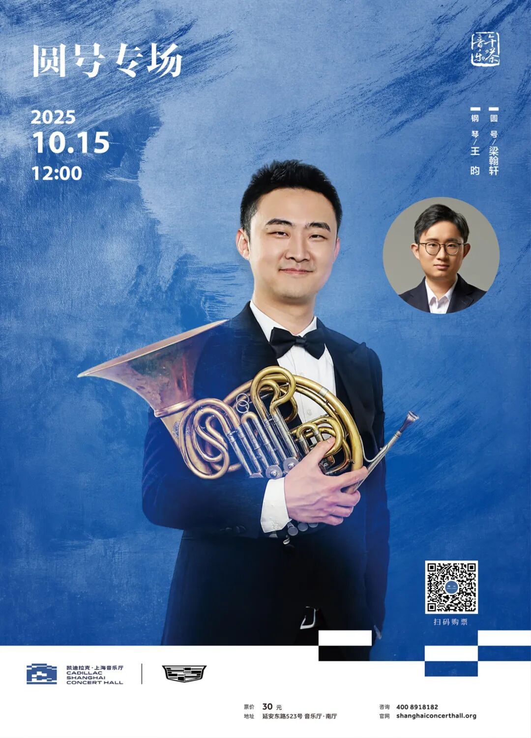 10月15日圆号专场,带来贝多芬、古诺的古典作品,此外中国艺术歌曲《敕勒歌》等作品也将由圆号这件乐器改编演奏。