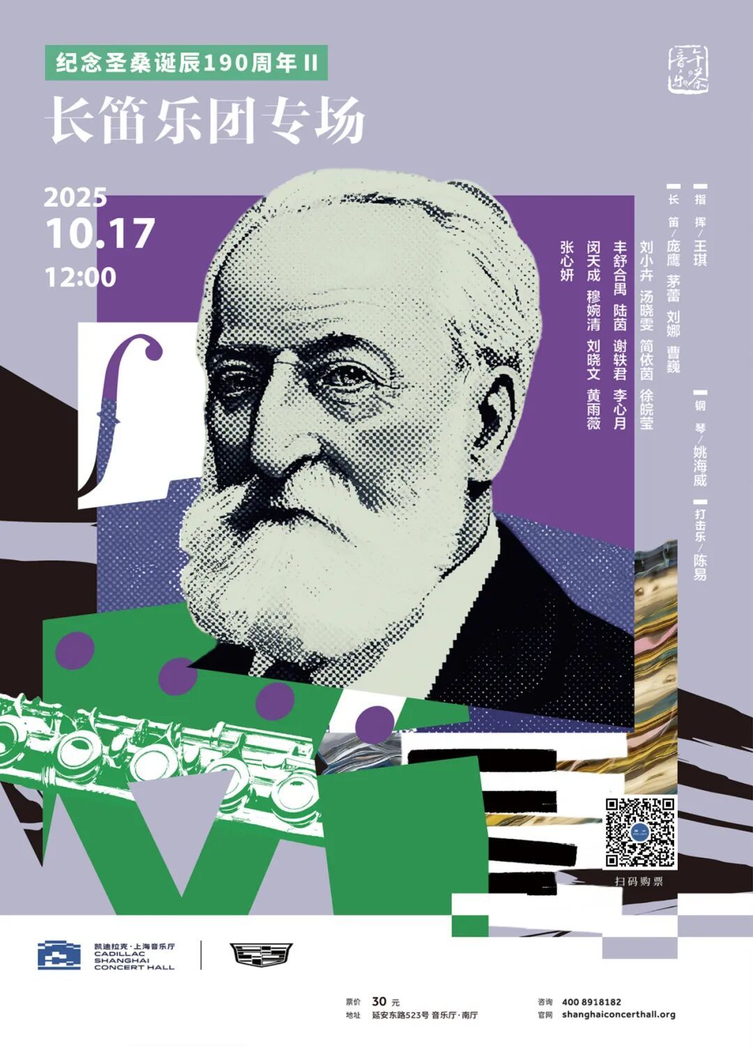 10月17日将继续带来纪念圣桑诞辰190周年Ⅱ——长笛乐团专场,现场聆听改编到长笛乐团大编制的《动物狂欢节》《酒神之舞》等杰作。