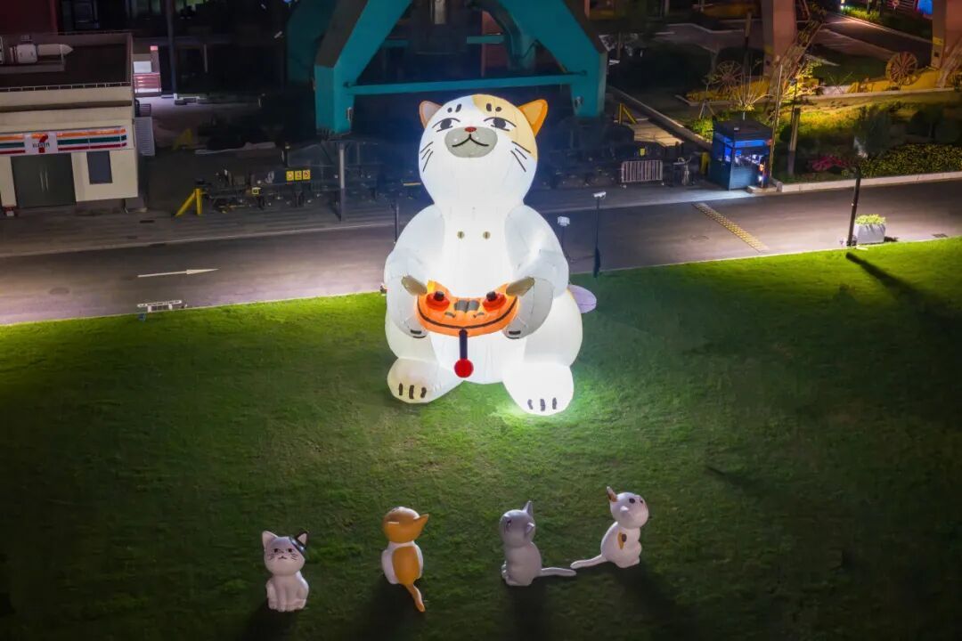艺术家Tango的艺术作品《猫的频道》夜间呈现