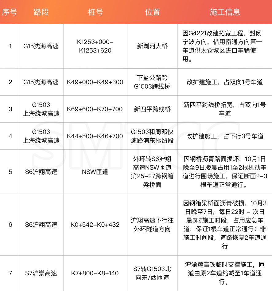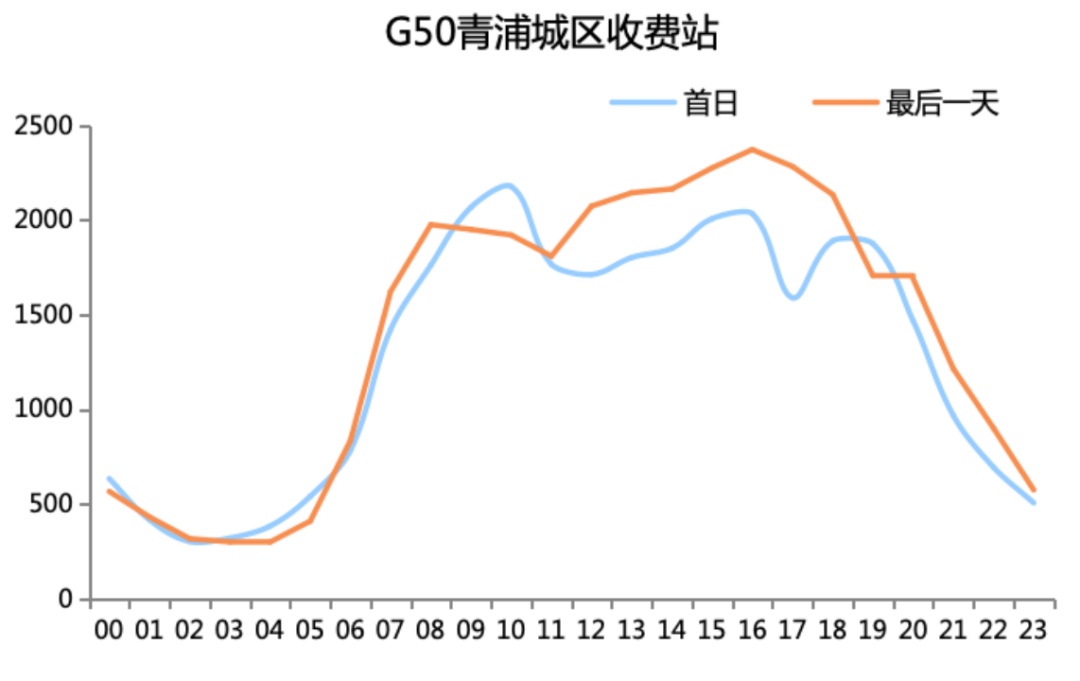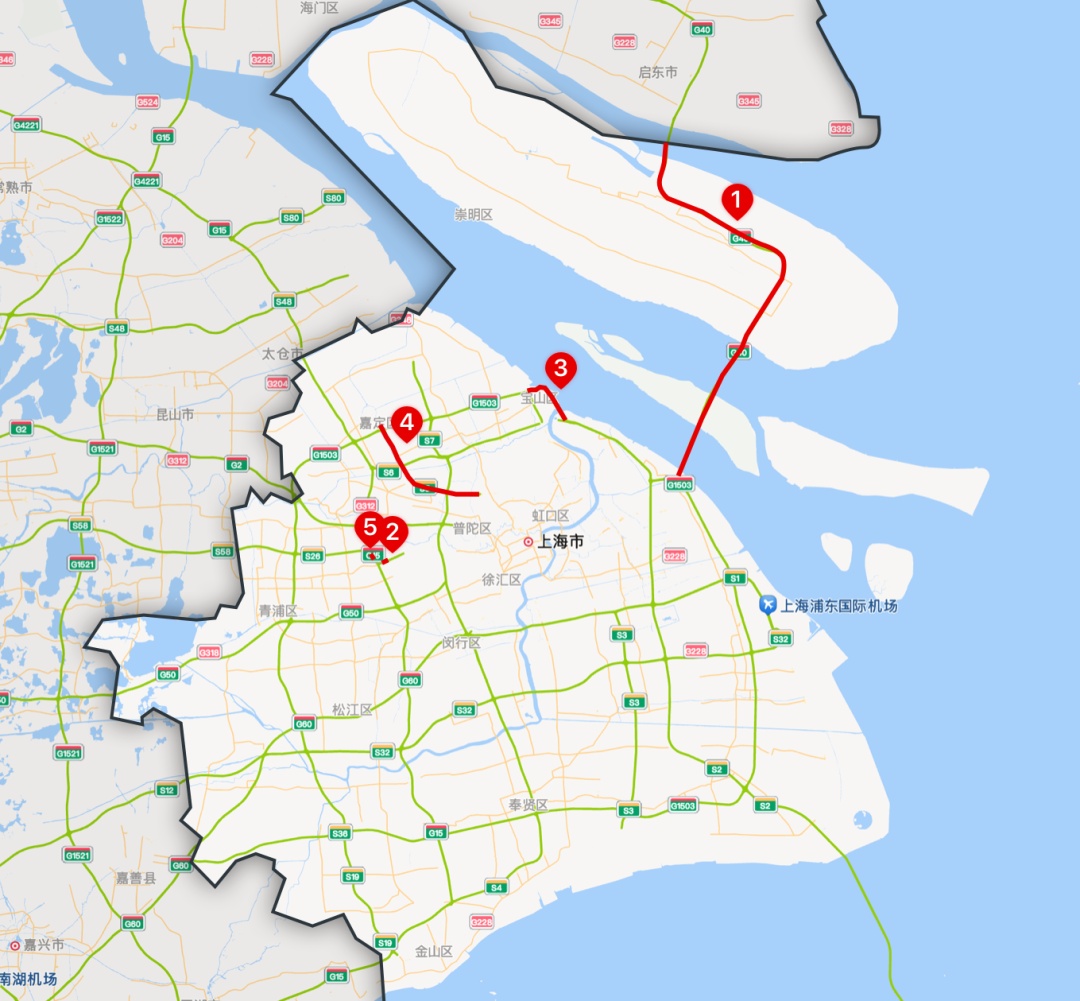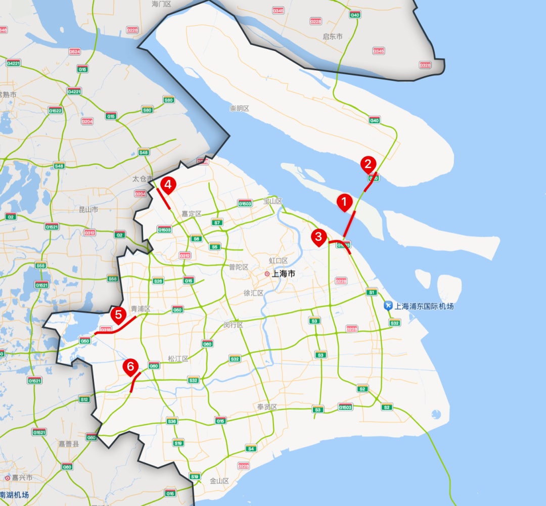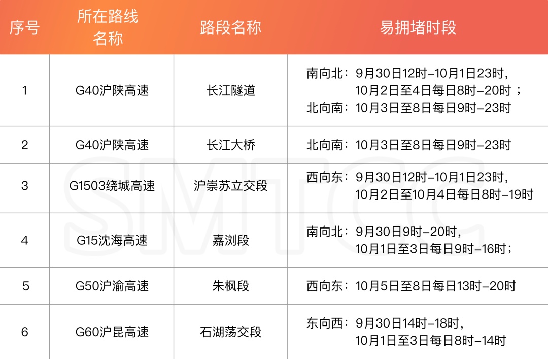 节日最后两天22:00-次日2:00,受铁路临客旅客及夜间航班旅客集中到达影响,对外交通枢纽周边接送客车流大幅攀升,将引发周边快速路出现不同程度局部拥堵,如北翟高架北侧北翟地道至嘉闵北翟立交、延安北侧延西立交至虹桥机场、沪闵西侧上海南站出口至莘庄出口等等。
