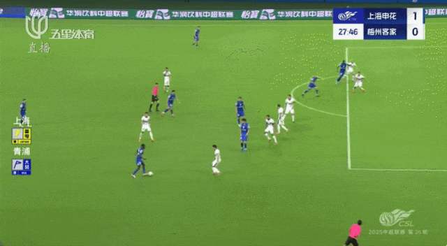 比赛最后时刻,梅州客家扳回一球。补时第4分钟,杨皓宇接于汉超助攻,再入一球。申花最终将比分定格在6比1。
