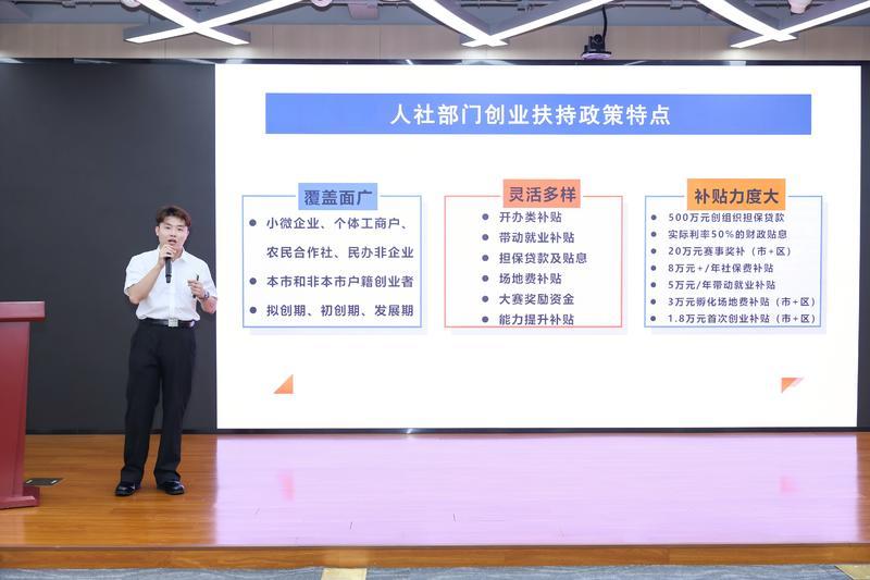 “源来好创业 政银共陪跑”主题活动同步开展。近年来,区人社创业服务部门持续加强与其他政府单位、金融机构和服务载体的协同联动,积极整合政策资源、形成服务合力。本次活动中,区人社部门、区税务局、上海银行三方联动,通过“政策解读+实务指导+互动答疑”为40余家企业现场解读创业补贴、税惠政策、融资产品等,助力创业者“一站获取”实务支持,推动政策落地见效。