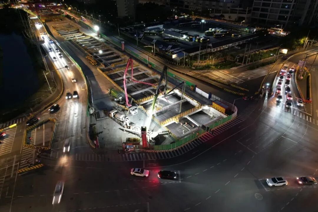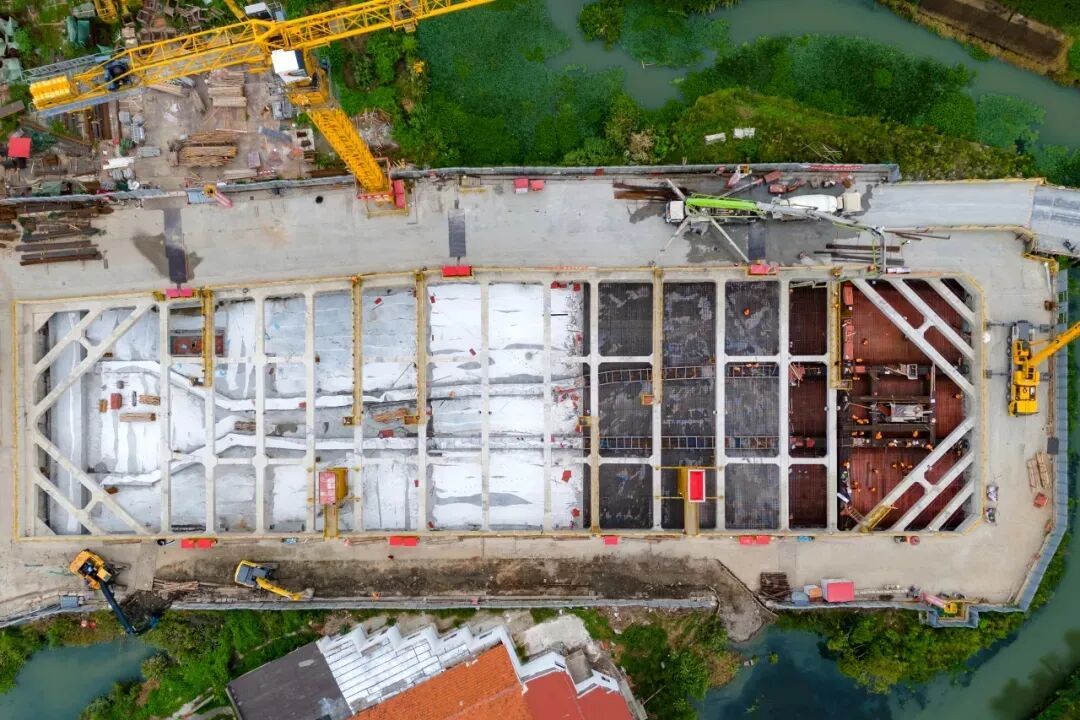 市域嘉闵线1标 城北路站主体结构顺利封顶 近期,上海轨道交通市域线嘉闵线1标迎来重大建设进展。随着最后一方混凝土浇筑完成,城北路站车站主体结构顺利封顶,为后续车站附属结构施工奠定了坚实基础。 1标城北路站位于嘉定区胜竹路与城北路交叉路口,沿胜竹路东西向布局,为地下两层岛式车站,总长632.2米,标准段宽21.8米,主体基坑采用明挖顺作法施工。 面对超深基坑、复杂地质以及狭小施工场地等多重挑战,项目团队以技术创新为抓手,成功攻克了一系列施工难题。 △ 针对超深地下连续墙施工研发的接头箱 在50米级超深地下连续墙施工中,针对橡胶止水接头的工艺难点,项目团队专门成立了“技术攻关室”,成功研发出带侧向顶推装置的榫型连接接头箱系统,使橡胶止水带接头工艺具备高刚度与高止水性。为提高施工效率,项目团队创新引入“桥梁思维”,打造全装配式钢栈桥系统,通过工厂化预制与现场模块化拼装,成功突破场地限制,实现“搭积木式”作业,施工效率大幅提升。 在安全与质量管控上,项目团队紧紧围绕上海轨道交通新一轮建设“十个目标”工作要求,针对“无渗漏车站”建设目标,实施全过程精细化管控,牢固树立“隐患就是事故”的理念,做到事前预防、事中控制、事后检查,确保车站结构内实外美。 此外,依托智慧工地系统,实时监测沉降、噪音、粉尘等数据,减少车站建设对周边环境的影响。积极践行绿色建造理念,采用可循环钢材,实现构件100%回收利用,践行“零废弃施工”的环保责任。 示范区线2标 水乡客厅站1、3、5、7区顺利封顶 近期,上海示范区线2标水乡客厅站迎来建设新进展。随着3区主体结构顺利封顶,标志着项目第一阶段1、3、5、7区四个施工区域全部完成封顶,后续施工将进入第二阶段2、4、6区的围护结构及基坑开挖施工。 2标水乡客厅站位于长三角一体化发展示范区核心区,是上海示范区线、江苏水乡旅游线、浙江嘉善至西塘线的三线交汇同站换乘站。车站为地下二层三岛五线车站,总长约1005米,是上海示范区线单体最长的地下车站。 △ 施工方案效果图 项目团队紧紧围绕上海轨道交通新一轮建设“十个目标”工作要求,严格恪守“无渗漏车站”建设标准,多次组织专题会议,不断优化施工方案,强化安全技术交底工作。 在质量管控方面,项目团队依据施工手册及质量指导文件,全面规范现场管理,对每道施工工序进行精细把控。现场推行“三检制度”,即自检、交接检与专检,对进场材料、钢筋加工以及混凝土浇筑等关键环节进行严格验收。 此外,为提升施工质量与效率,项目团队持续推进科技创新。在6区钢筋笼焊接作业中,采用桁架焊接机器人,该机器人可根据现场实际工况灵活调整布局,实现“模块化”应用,显著提升了适应性和工作效率。