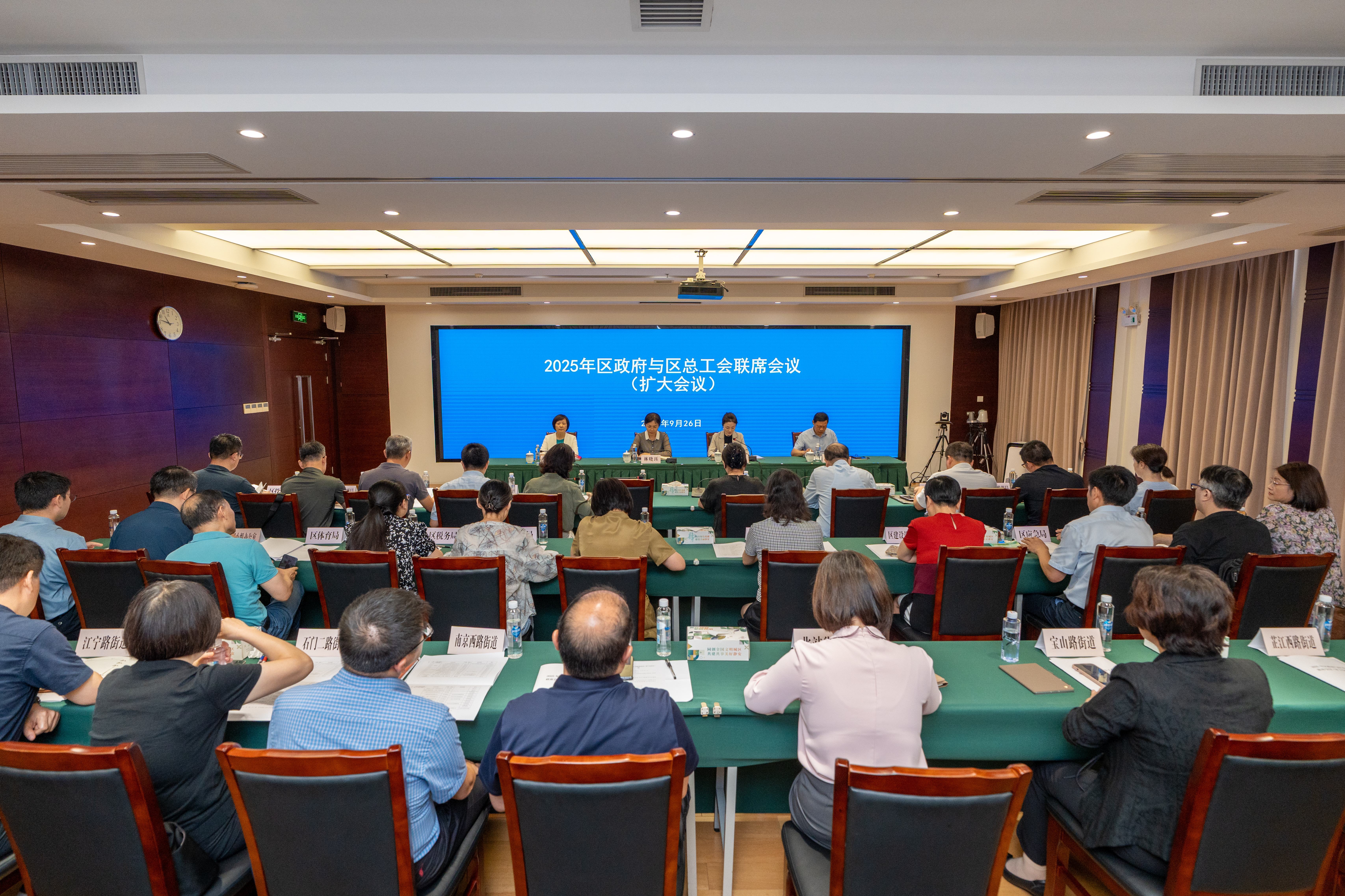 9月26日,静安区召开2025年政府与工会联席会议(扩大会议)。区人大常委会副主任、区总工会主席、政府与工会联席会议协调小组组长林晓珏出席会议并讲话,区政府副区长、政府与工会联席会议协调小组组长龙婉丽主持会议。