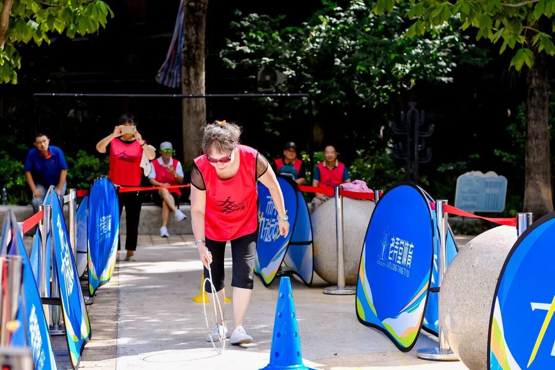 要说最受阿姨妈妈欢迎的九子游戏,可能跳筋子和跳房子排名非常靠前了,这不,活动现场每个人都是蹦蹦跳跳的,比赛的人一脸笑意,围观的人则是欢呼鼓劲,氛围又热情又温馨。对于爷叔们来说,抽驼子、滚圈子、拍片子这些需要更多力气和竞技技巧的游戏会让他们更加投入,每当有人得到好成绩,现场就会爆发出阵阵掌声。