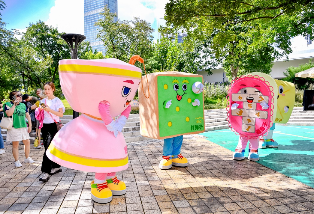 现场,充满未来感的“九子家族元气宇宙”互动装置也让人耳目一新,通过代表顶核子、跳筋子等传统项目的九颗“星球”组成星环,将熟悉的弄堂游戏幻化为星际景观,寓意着在传承中奔向未来。现场还有可爱的九子IP人偶与观众互动合影,以生动有趣的方式传递九子文化。