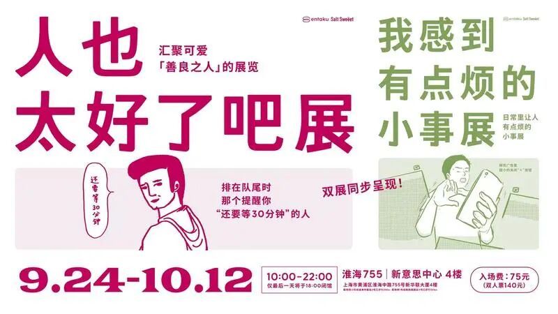 9月24日至10月12日,淮海755推出“人也太好了吧”治愈系主题展,让大家与记忆中的“好人”重逢,感受生活中那些“有点烦”的小事。