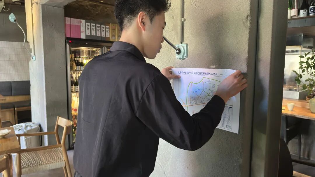 沿街商户正在店内醒目位置张贴3.0版“公厕地图”