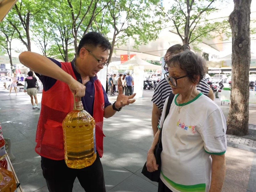 活动现场设置了多个功能区域,集展销、科普、互动于一体。其中,好粮油产品展示区集中展示了获评上海粮油行业协会“上海好粮油”的产品,大米、面粉、食用油等商品琳琅满目,吸引居民驻足选购。参与活动的爷叔阿姨说:“在家门口就能买到这么多好粮油,还学会了怎么挑选好米好油,既方便又长知识,希望以后能经常举办这样的活动。”