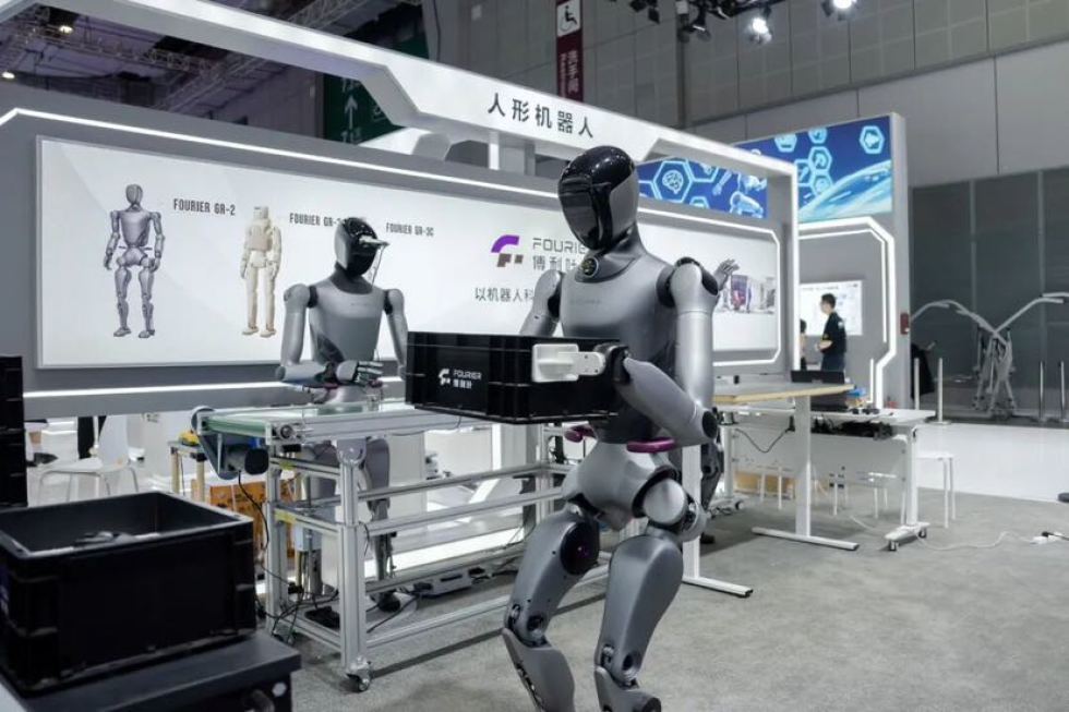 在傅利叶展台的模拟工业场景中,多台GR-2分工明确、有条不紊地围绕模拟产线完成料箱搬运、物料传送、物料分拣全流程闭环,机器人之间自主完成分工协作、无缝衔接。