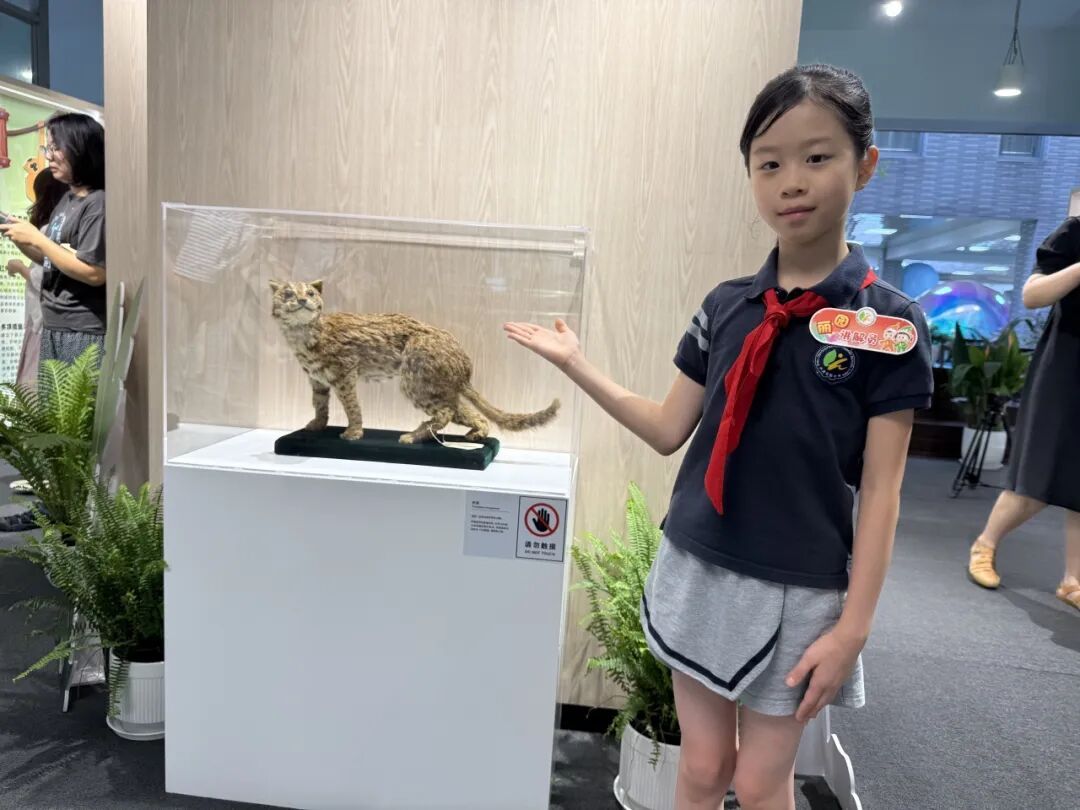 四年级女生苏苡萱之前去过云南的西双版纳旅游,那里的热带动物给她留下了深刻的印象。这次,校园中多了一座热带雨林主题博物馆,她非常期待,积极报名担任小讲解员,负责动物标本区域的讲解,“这里有豹猫、白鹇、中华穿山甲,都是我平日里没有见过的。”