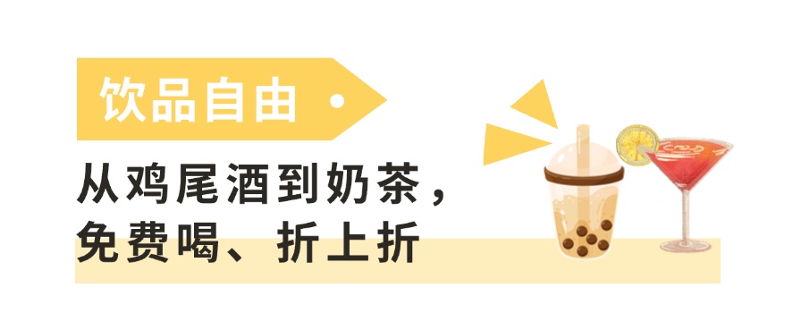 想解锁免费鸡尾酒?9月25日-10月1日,去大学路DASH LAND拍4张店铺美照+50字小红书,就能get一杯机打鸡尾酒;爱杯·bar&lounge直接送长相思、雷司令等多款酒品畅饮,公路商店“胡桃99特调套餐”直降10元。