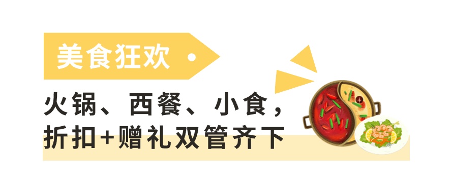 五角场万达更是“吃货天堂”:巡湘记送南瓜馒头/臭豆腐三选一,胖哥俩点煲加9.9元换冷菜,肥仔荣菜品6.5折开炫,左庭右院双人餐直降37元,还有子弹面馆、鱼酷等多家店铺满赠小吃,让你举杯时,总有美食作伴。