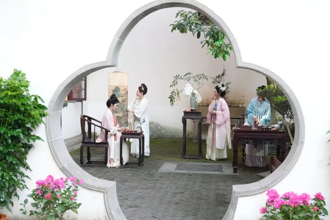 与之呼应的“槎溪·货郎集”则重现千年市井风貌,各色摊位售卖传统小吃、手工艺品,仿佛将人拉回旧时南翔的热闹街头;古猗园内,“园主会客记”数字人互动打破时空界限,游客可与虚拟“园主”对话了解园林历史,一旁的清代市井流动展演,更以实景演绎还原旧时生活场景。