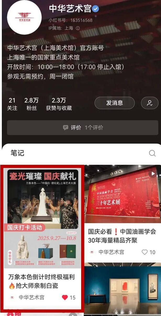 活动时间内,关注@中华艺术宫 小红书账号 ,点赞活动笔记,带话题#中华艺术宫#小红书艺术发光计划] #德化白瓷展 。
