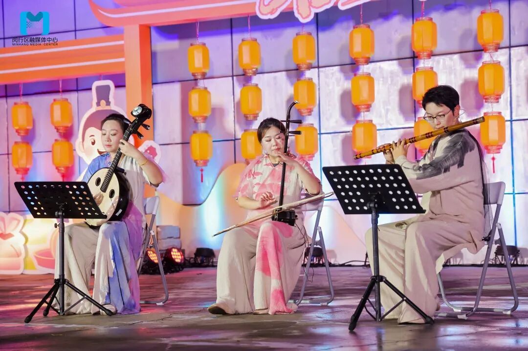 此次,中医和民乐还进行了一次跨界合作。夜幕下,上海民族乐器一厂带来了中阮、二胡、笛子合奏的名曲《酒狂》,伴随着熙熙攘攘的人声、车流声,让七宝古镇的烟火气平添了一抹典雅的气息。
