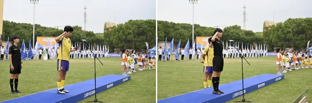 宣传片《聚热爱 燃梦想》拉开了本次开幕式的序幕,该片以陆家嘴天际线、石库门弄堂等元素为背景,串联起上海校园足球的青春故事,引发全场观众热烈的掌声。运动员入场环节,乙级组48支队伍、甲级组16支队伍及超级组8支队伍依次入场,齐声喊出球队的青春宣言。运动员与裁判员代表依次宣誓,承诺恪守体育道德、秉持公正判罚。随着比赛正式开幕,现场响起激昂的音乐,足球少年们齐声唱响赛事主题曲《热血赛场》。