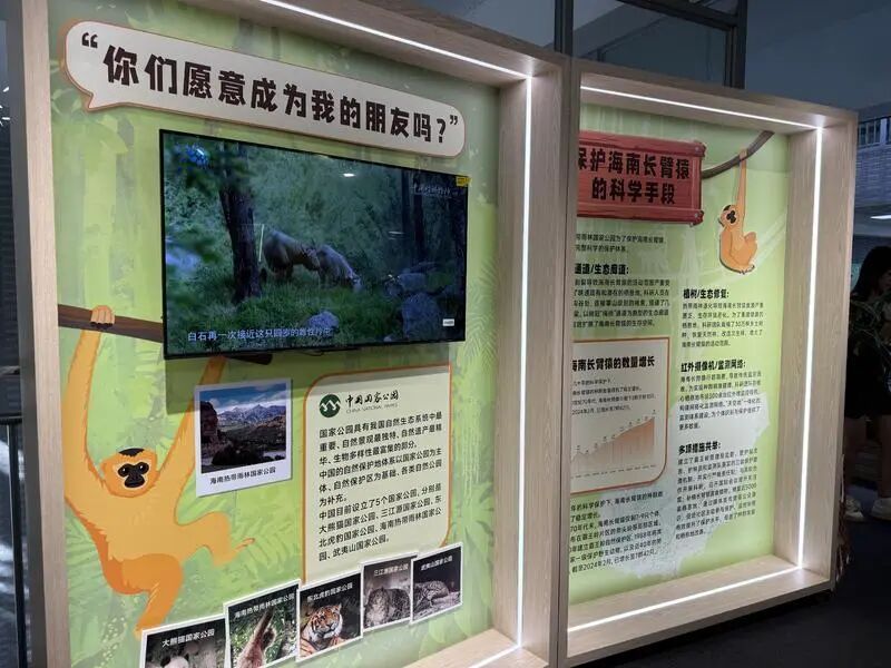 来自五(6)班的李骁珩则对科学家保护雨林动物的技术惊叹不已。“通过红外摄像机和检测网络,科学家竟然让海南长臂猿的数量从20世纪70年代的7—9只,增长到了现在的42只!”他介绍,为实现种群精准管理,科研团队在核心栖息地部署了300台红外摄像机,“这让我知道热带雨林不仅潮湿温暖、动物种类多,背后还有这么多厉害的科技在守护稀有动物。我们也要学会保护环境,保护珍稀动物。”