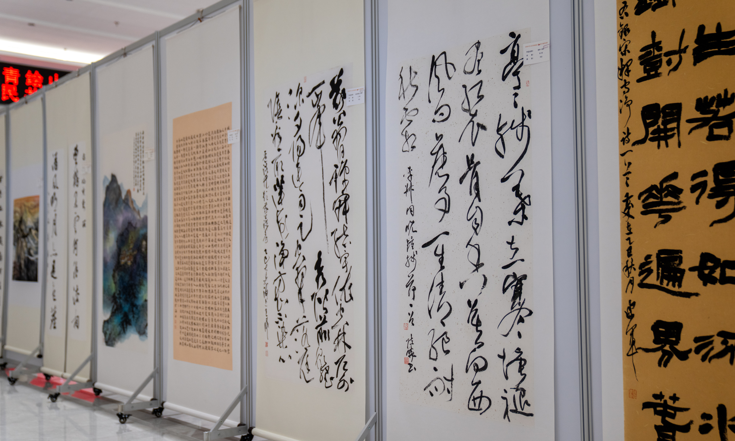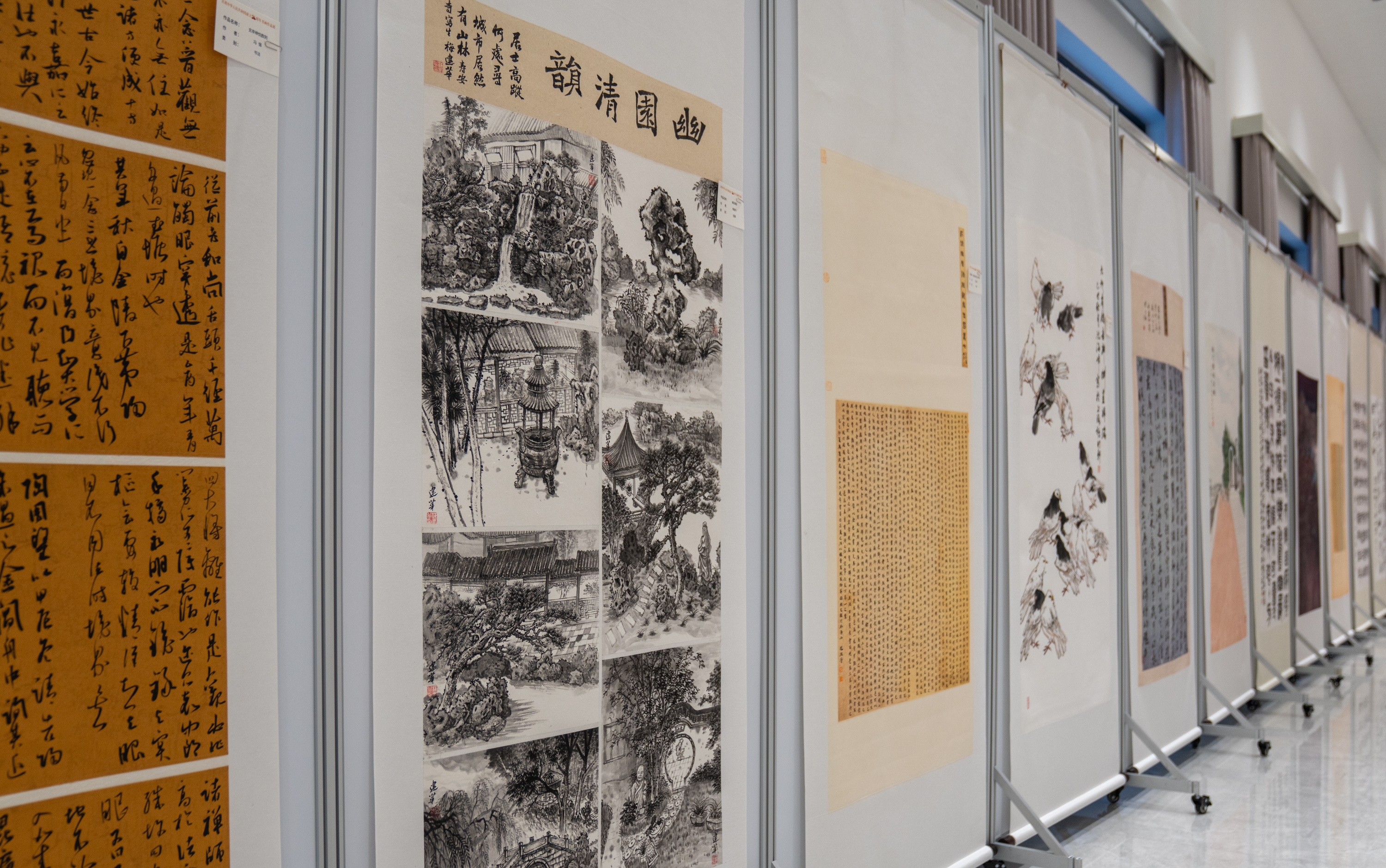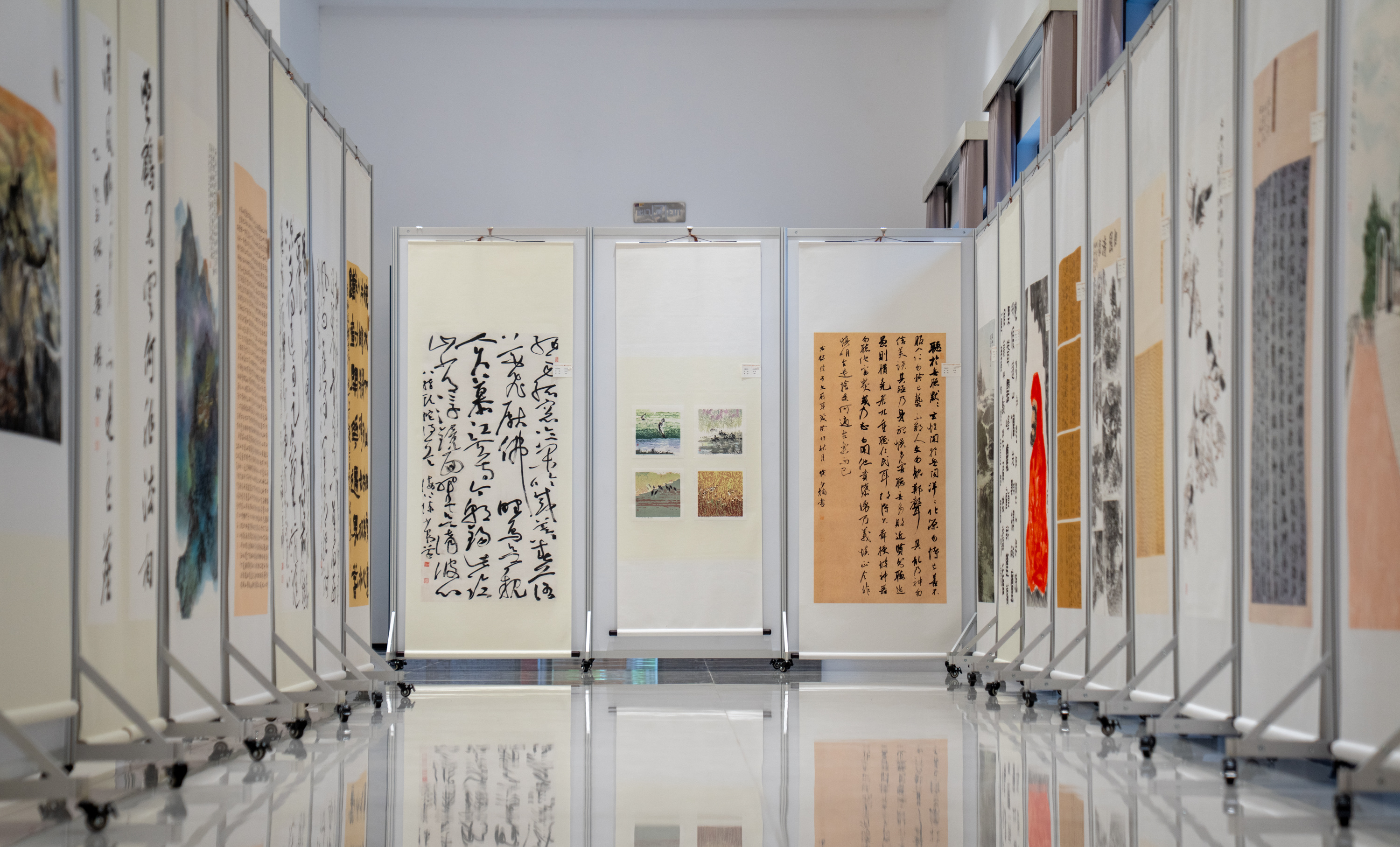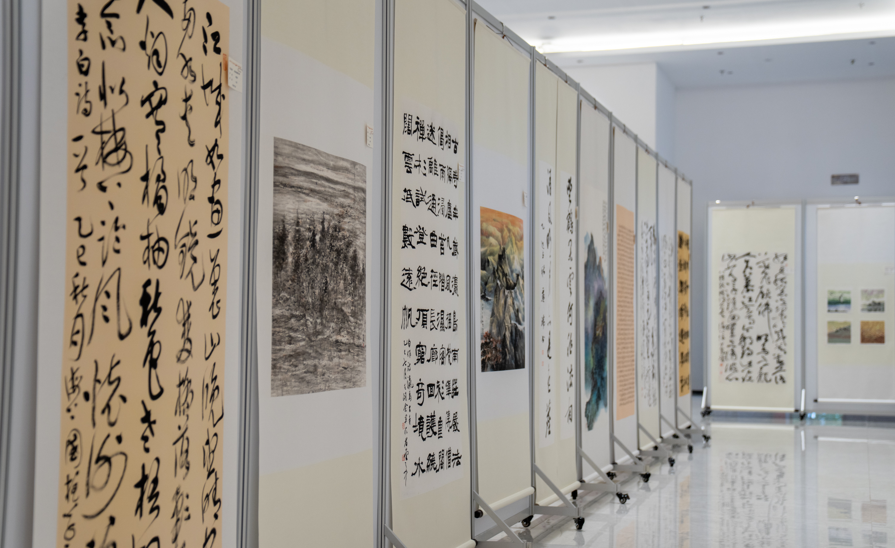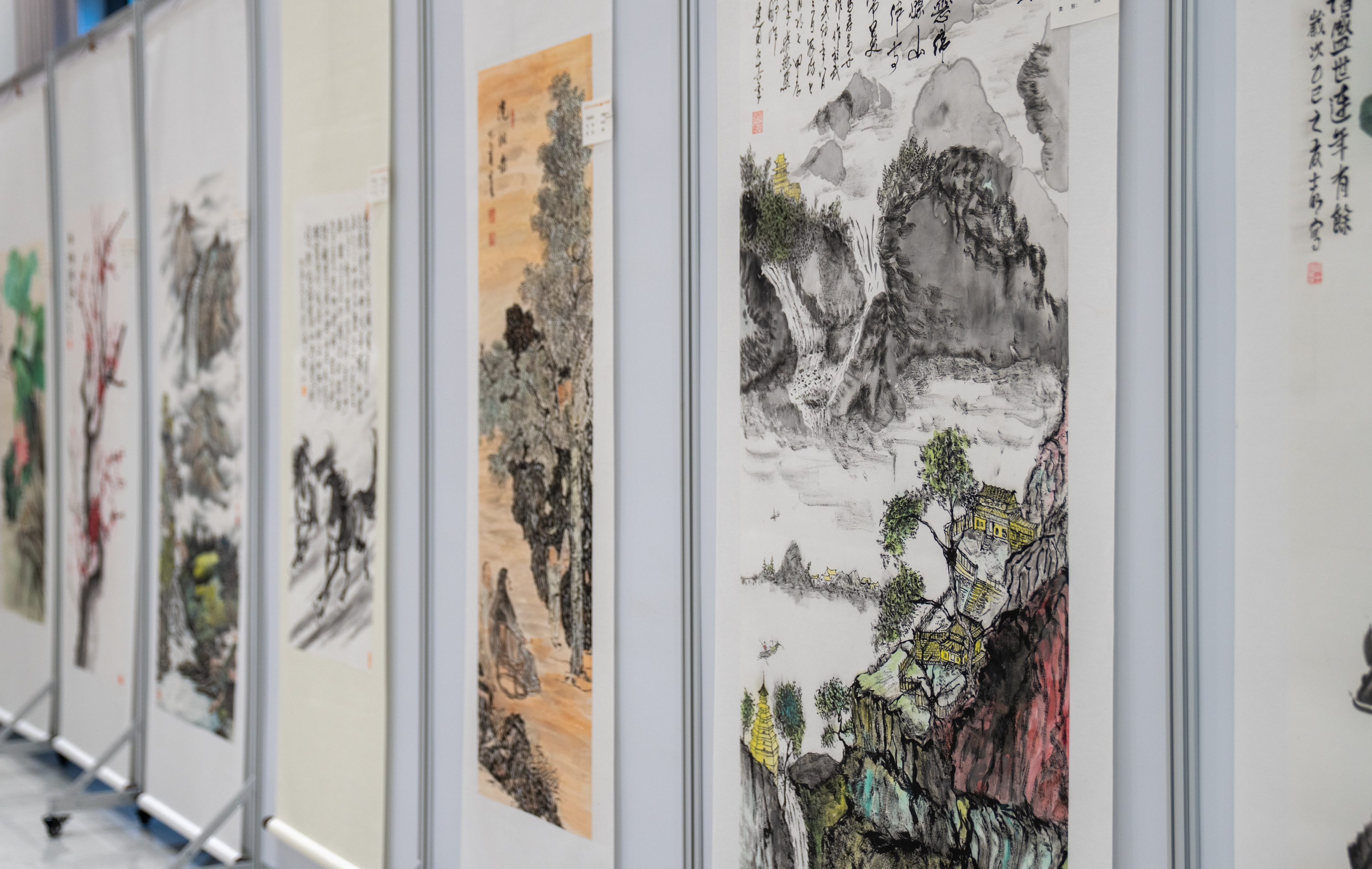 据了解,此次书画展共展出124幅作品,内容分别围绕山河礼赞、时代印记、祥和盛世、经典诗词等主题进行创作。一笔一画间,可见山河壮丽、国泰民安;一墨一彩中,能感岁月静好、人心和善,既承传统法度,又具时代气息。本次展出时间将持续至10月10日。
